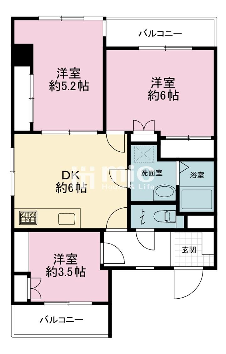 ■専有面積54.63㎡・3DK