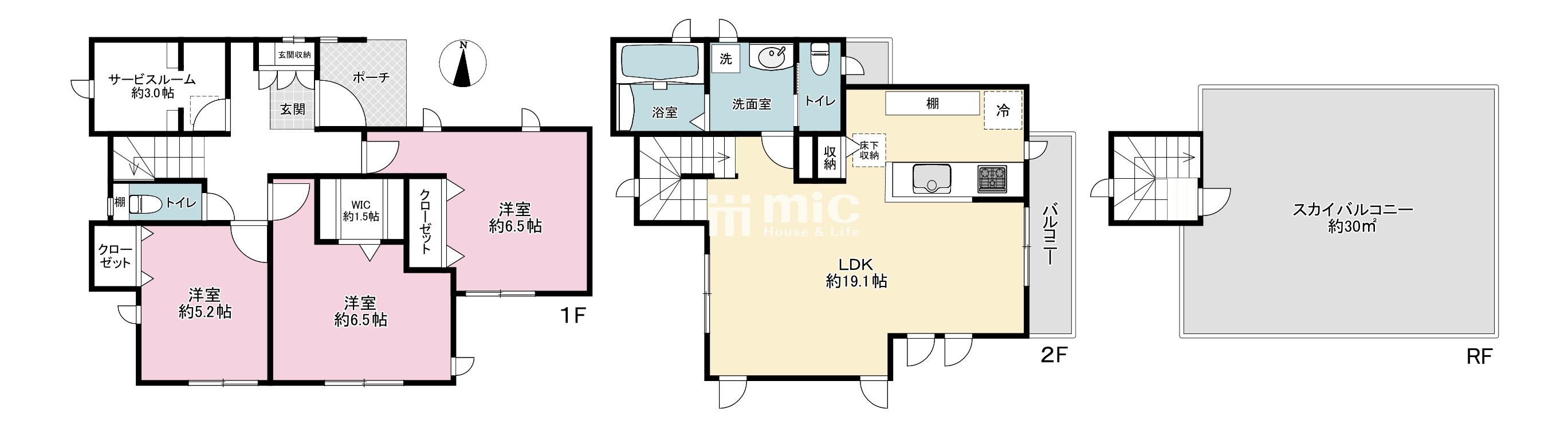 ■1階には約3.0帖のサービスルームを設け、季節物や日用品ストックに便利!