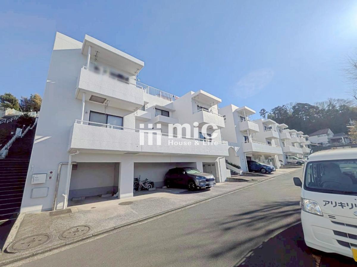 建物は白色の外壁が爽やかな印象で、南西方向に傾斜した丘にひな壇上にレイアウトされています。各住戸へは1~2戸が共用の階段でのアプローチとなっており、玄関先にはポーチやパティオがあります。全戸が南西向きで広々としたバルコニーを設けており、良好な陽当たりと通風、眺望が期待できます。総戸数は45戸、ご家族同然のペットと暮らせるマンションです。 (担当:津ノ浦 悠一)