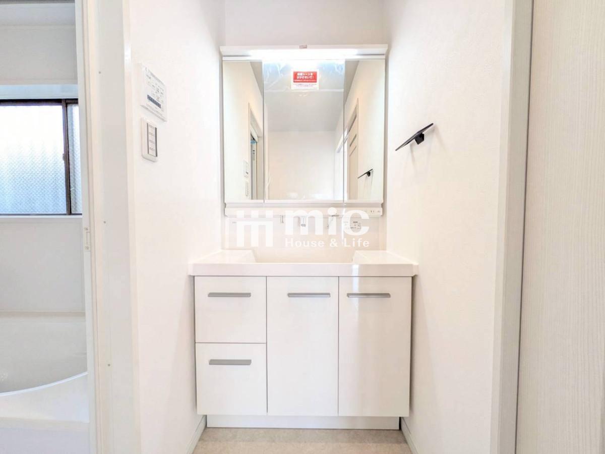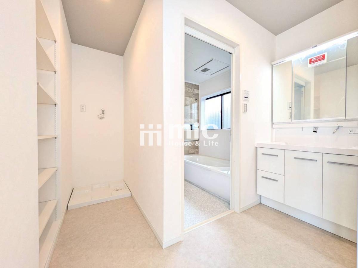 ■タオルや洗剤などをすっきりと収納できる洗面室