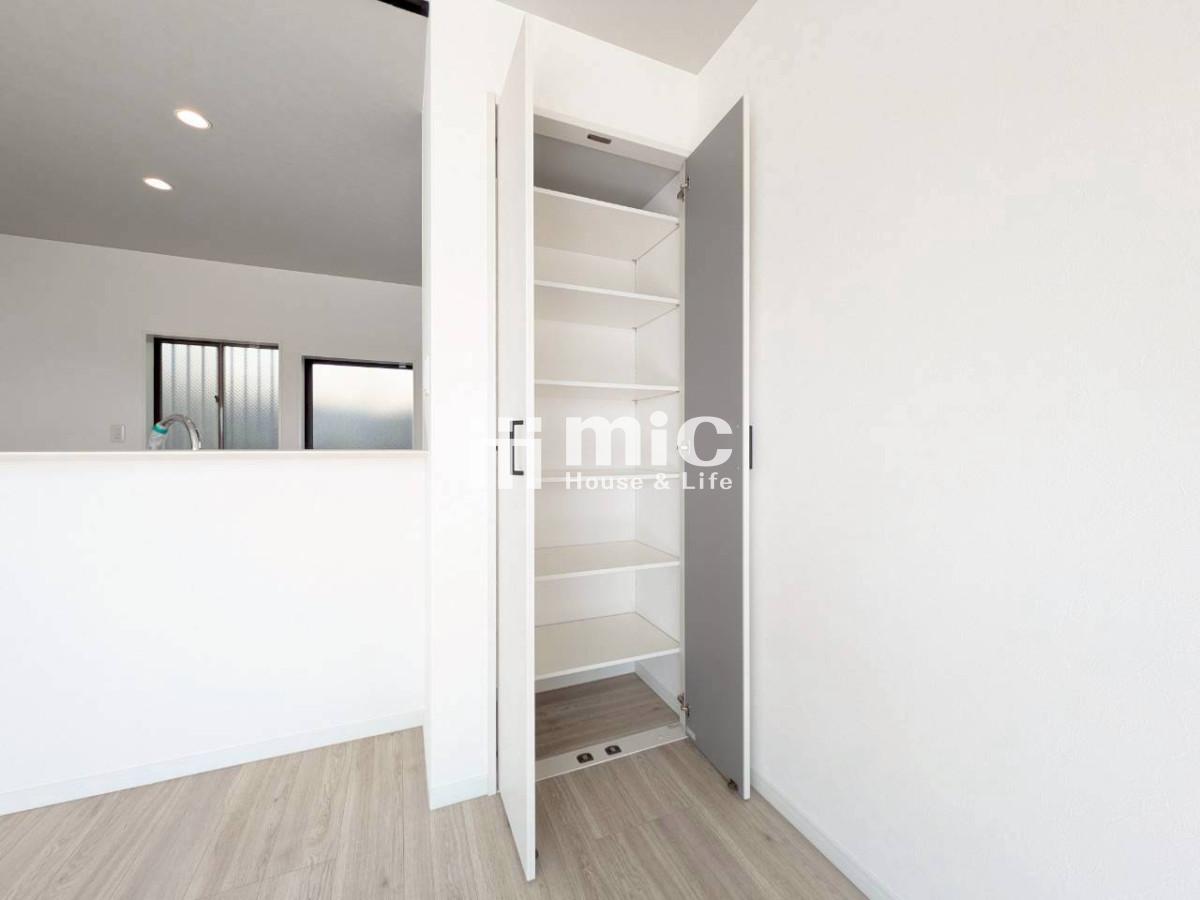 ■日用品や掃除用具などの収納に便利な廊下収納・1帖の納戸