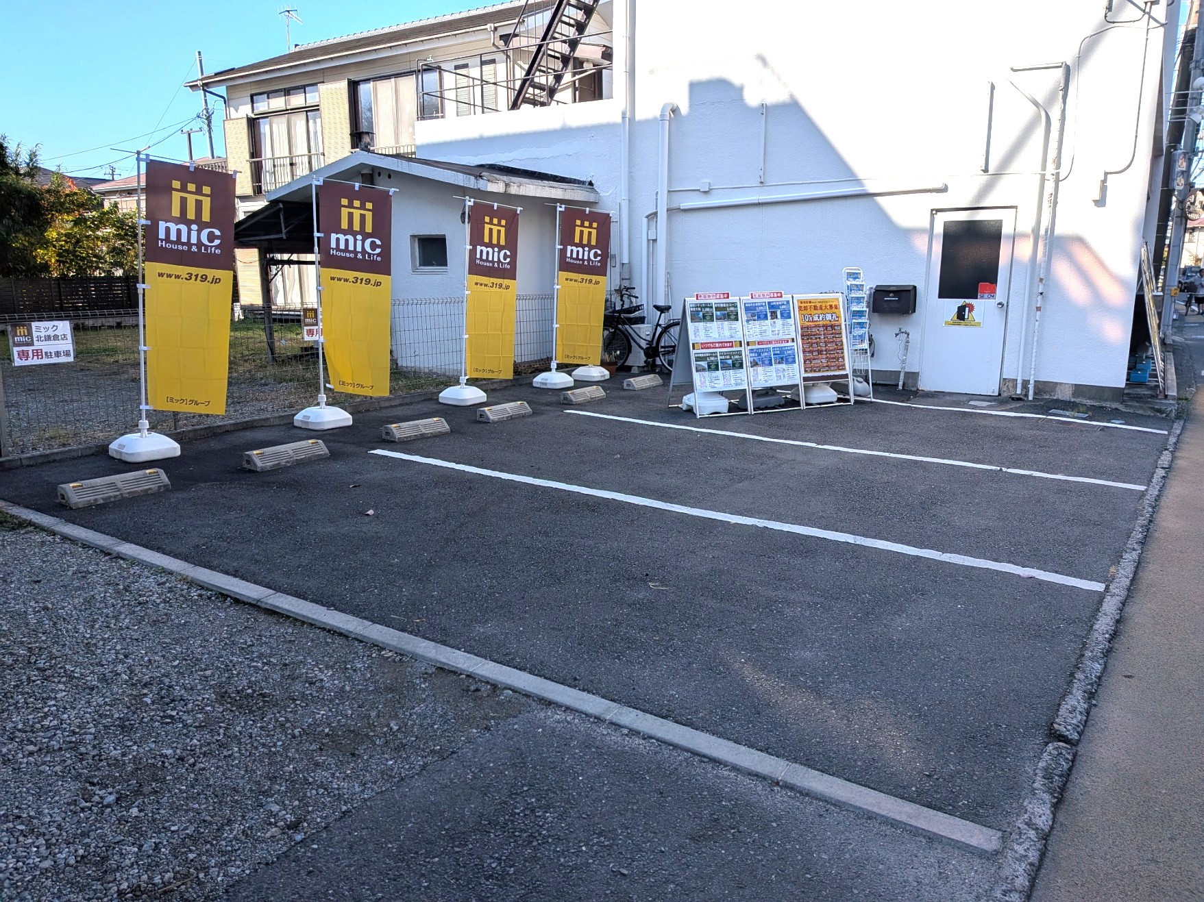 建物左手には無料駐車場がございますので、ぜひご利用ください。